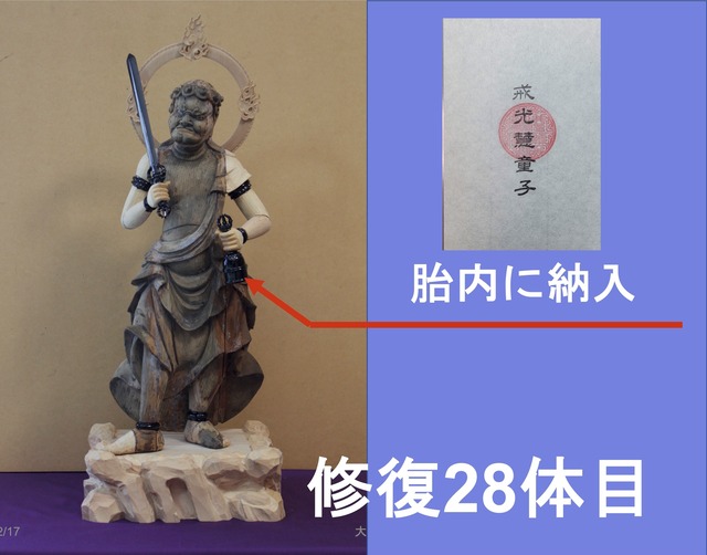 ぜひ、この修復の機会に「願い文(ぶみ)」を仏像の中に納入していただきたいと思っております。自身の「願い文」が入っている仏様は、自身の守り本尊となります。お参りの度に、ご自身の願い事が入っている童子様に手をお合わせ下さい。きっとお守りくださいます。