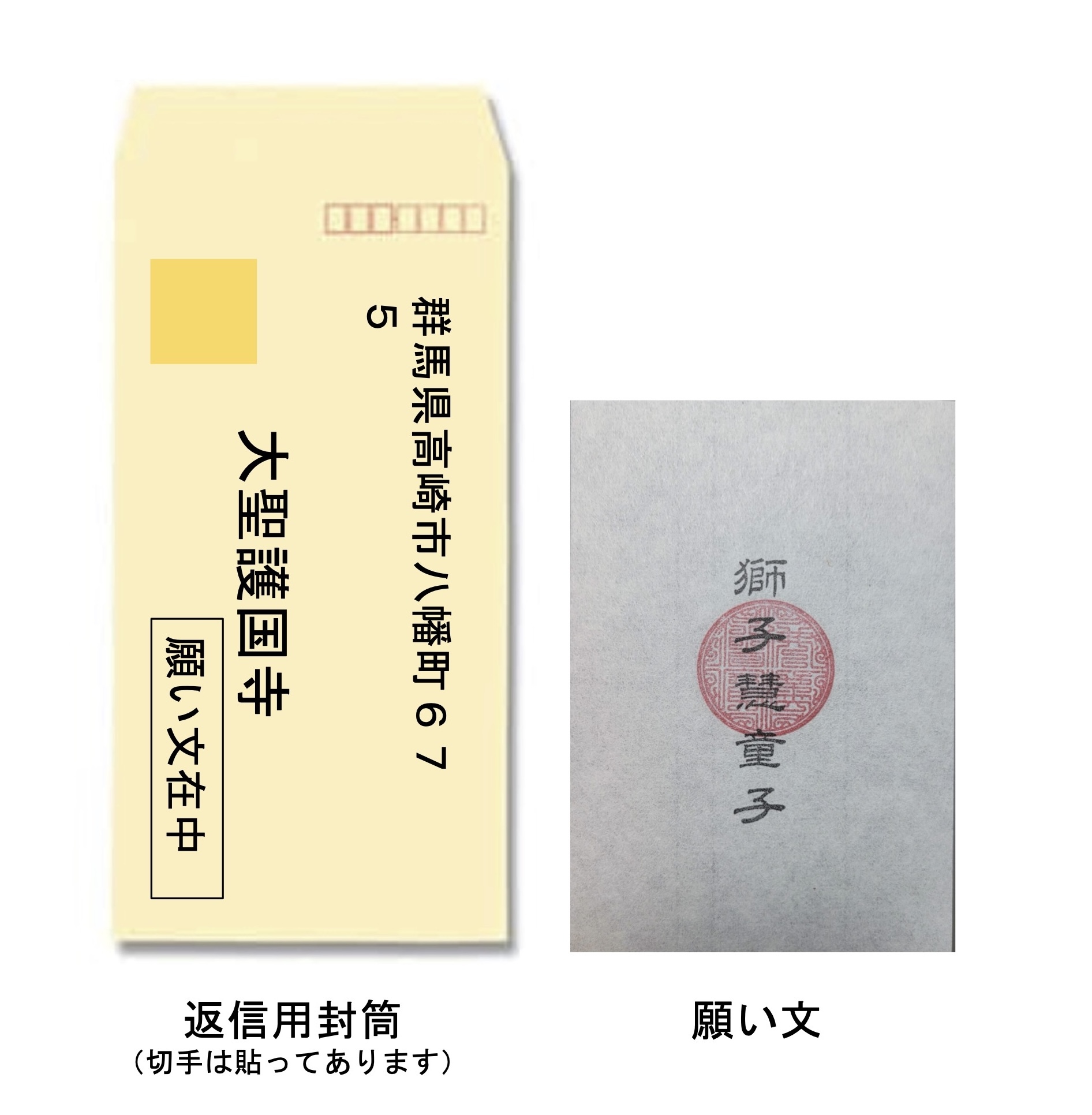 「願い文(ぶみ)」を同封されている大聖護国寺宛の封筒の中に入れそのまま投函してください。切手は貼ってあります。お寺に届きましたら確認のお葉書をお送りいたします。