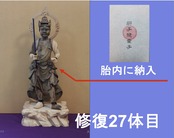 皆様よりお預かりした「願い文(ふみ)」は、住職が責任を持って童子様の胴内に納入し懇ろにご祈願いたします。その後、脇を閉じ修復の最終工程に進むことになります。