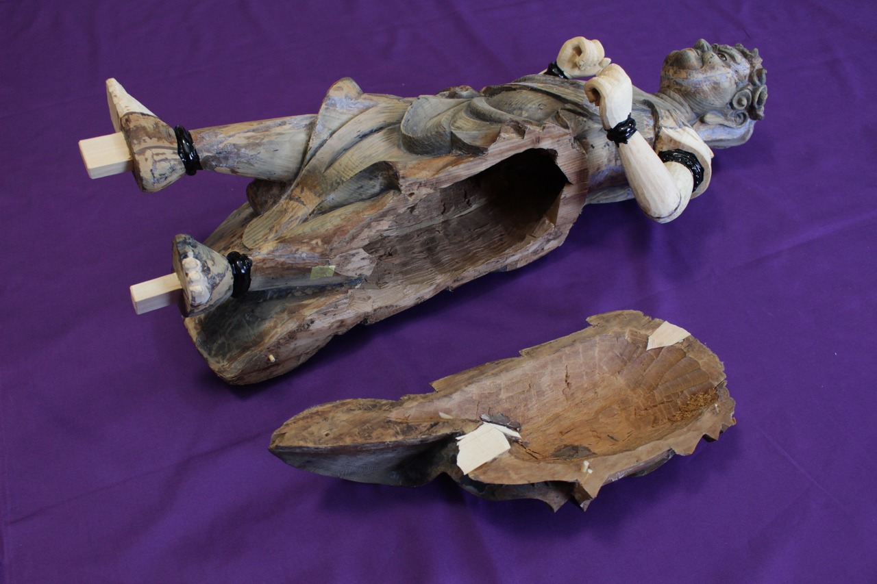 皆様よりお預かりした「願い文(ふみ)」は、住職が責任を持って童子様の胴内に納入し懇ろにご祈願いたします。その後、脇を閉じ修復の最終工程に進むことになります。